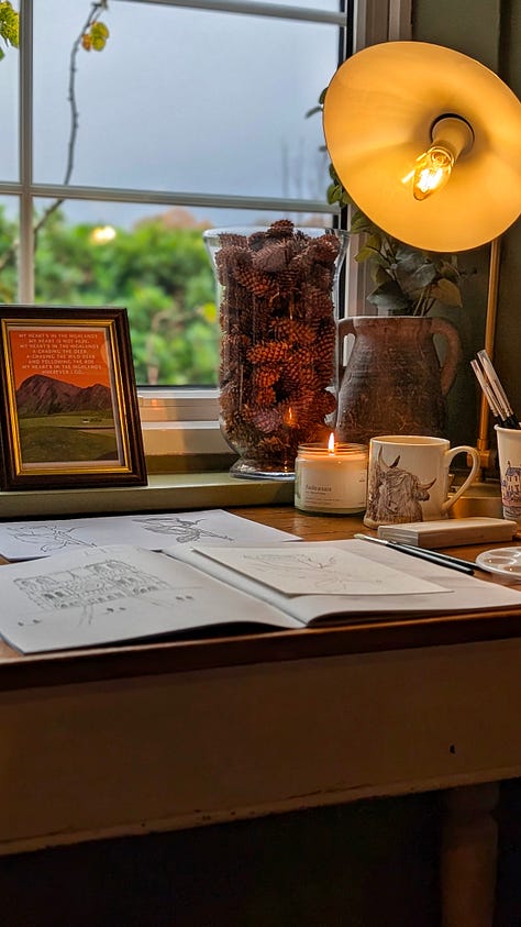 Last month I set myself some intentions. Things I hoped to achieve outside the usual demands and requirements of everyday life. They were not intended as a ‘performance indicator’, rather a way of reminding myself what I would really like to spend my time doing. Here are November’s. We now have a DIY amnesty for the remainder of 2025. I’m not entirely sure that’s the correct word, although you get my thinking. Despite itching to remove a bank of cupboards in the kitchen to make room for a beautiful dresser, remove hideously nineties en suite tiles to have a go at panelling, and tear down ceilings to bring back charm and character, all these mess making endeavours will be 2026’s problem. For the remainder of the winter, in between our day jobs, community commitments, carpet bowls and so on, we are embracing nature’s behaviour. We are going to slow down and recharge, ready to go all sledgehammers blazing next year. So, here we go: